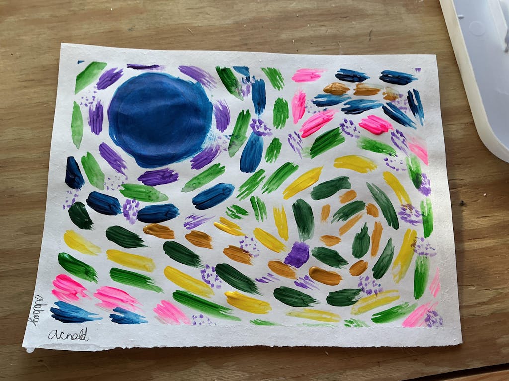 Hi friends! Today we're painting an abstract masterpiece in the style of the famous artist Alma Thomas 🌎