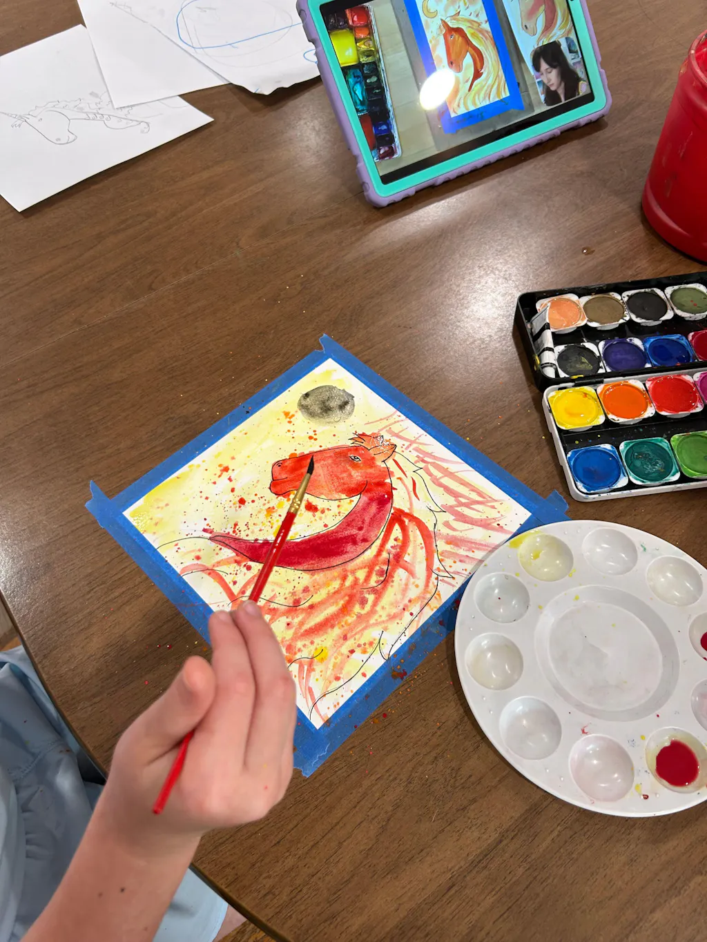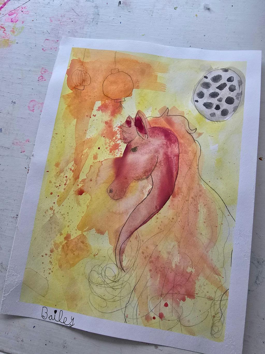 Happy Lunar New Year! This year is the year of the fire horse, so to celebrate we're painting our own unique portrait of a horse with a fiery mane! This adventure is a great chance to practice drawing hair and painting with warm colors 🔥