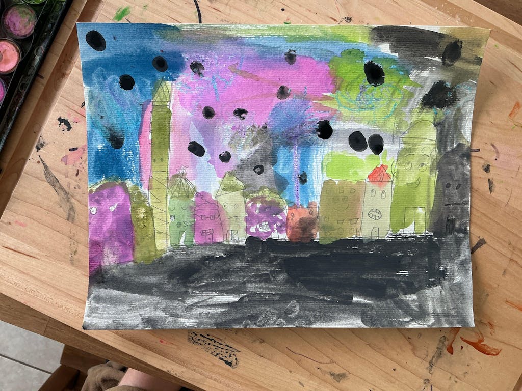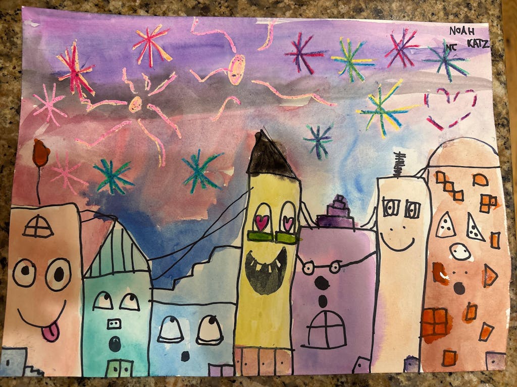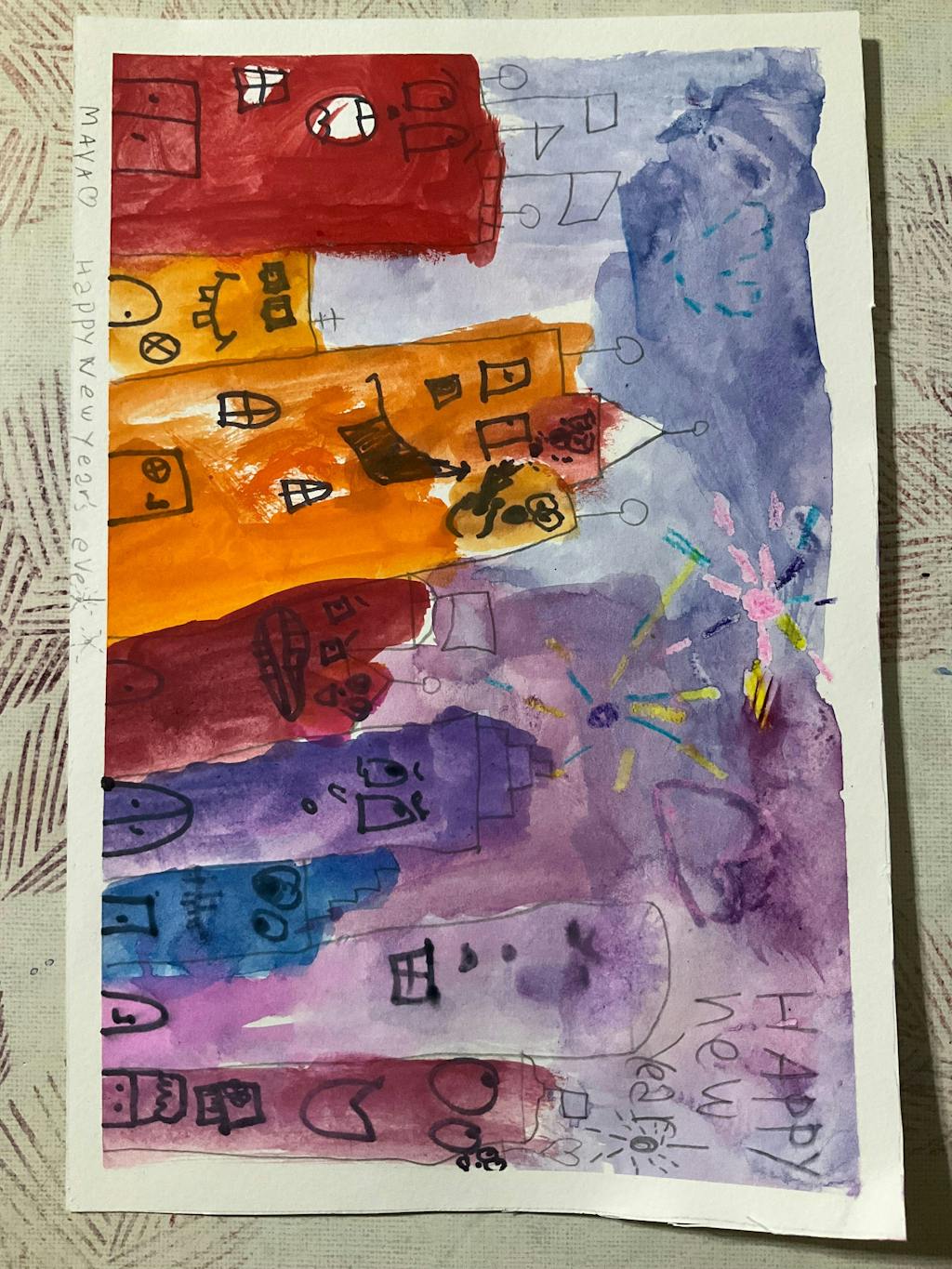 Hi friends! Today we're painting firework show with buildings as our audience. This lesson is a great chance to practice facial expressions. Are you ready to get silly? 😜