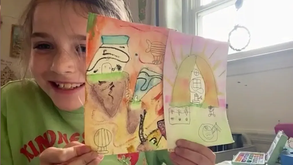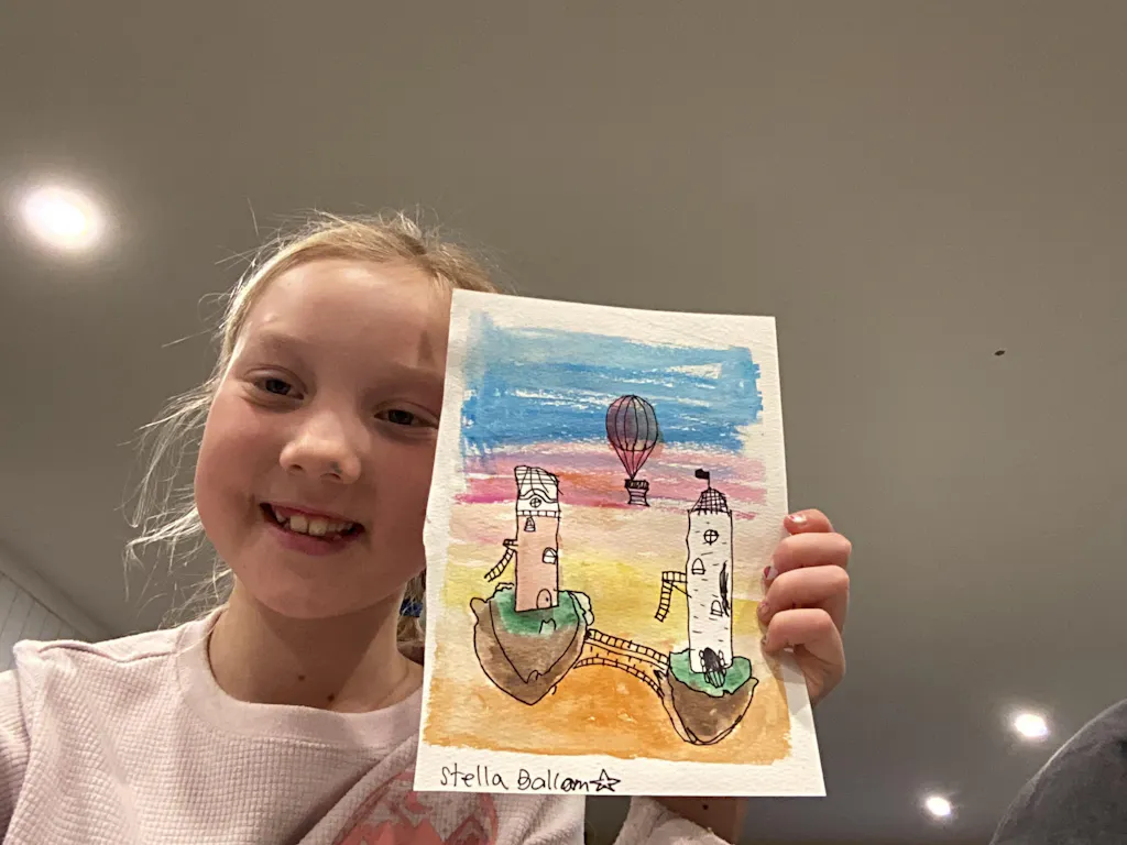 The sky and your imagination's the limit in this dreamy work of art! This lesson is a great chance to practice preserving white space on the paper using tape ☁️ 🌈 🏰