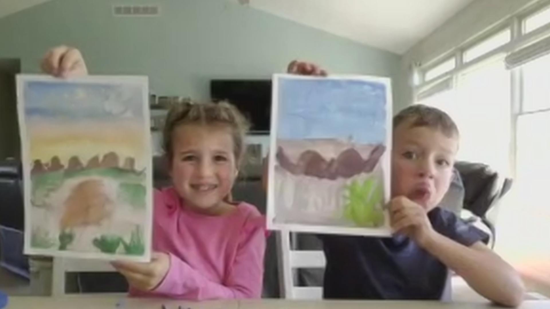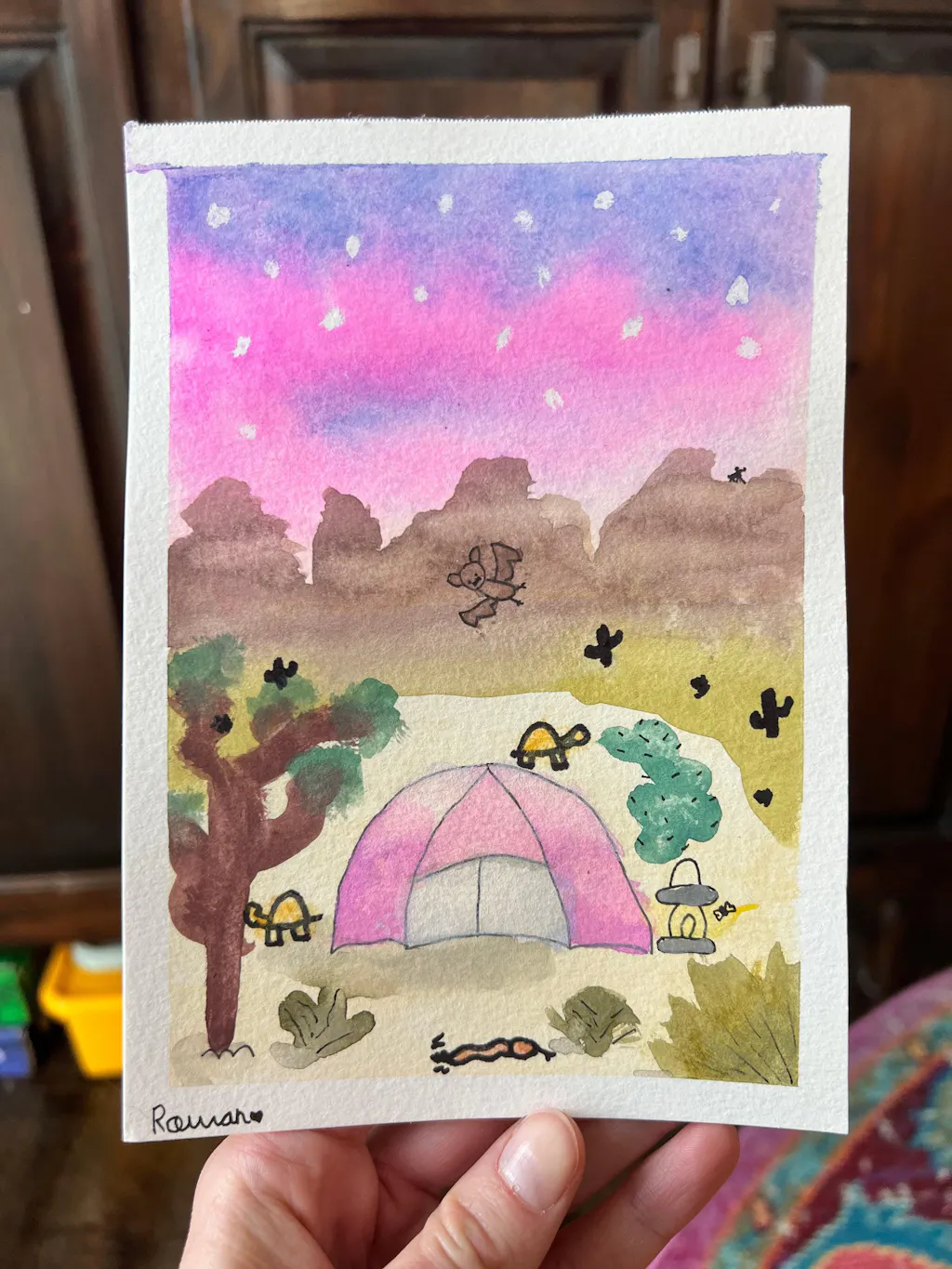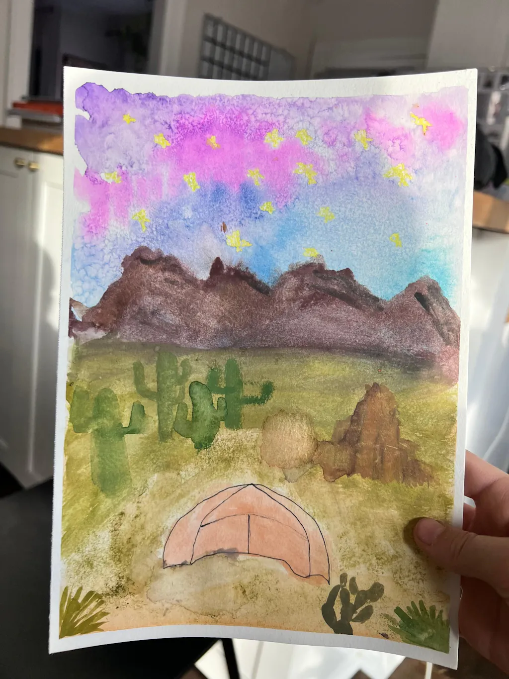 This lesson is a great chance to use crayons to create stars and paint jagged lines for some rocky boulders in the distance. 🌵 🏜️
