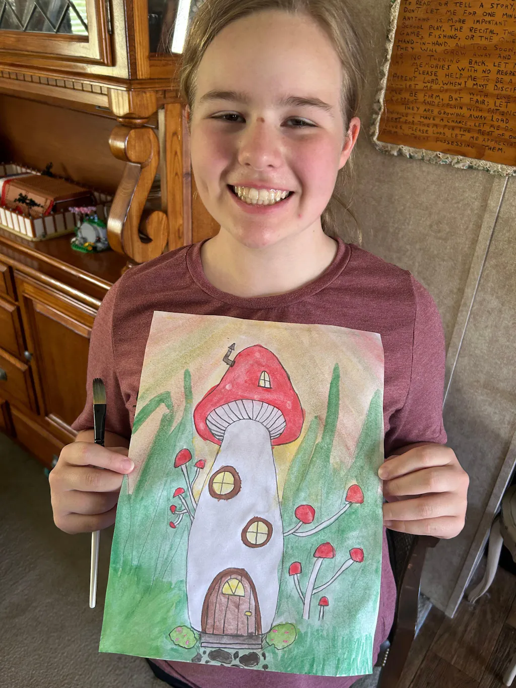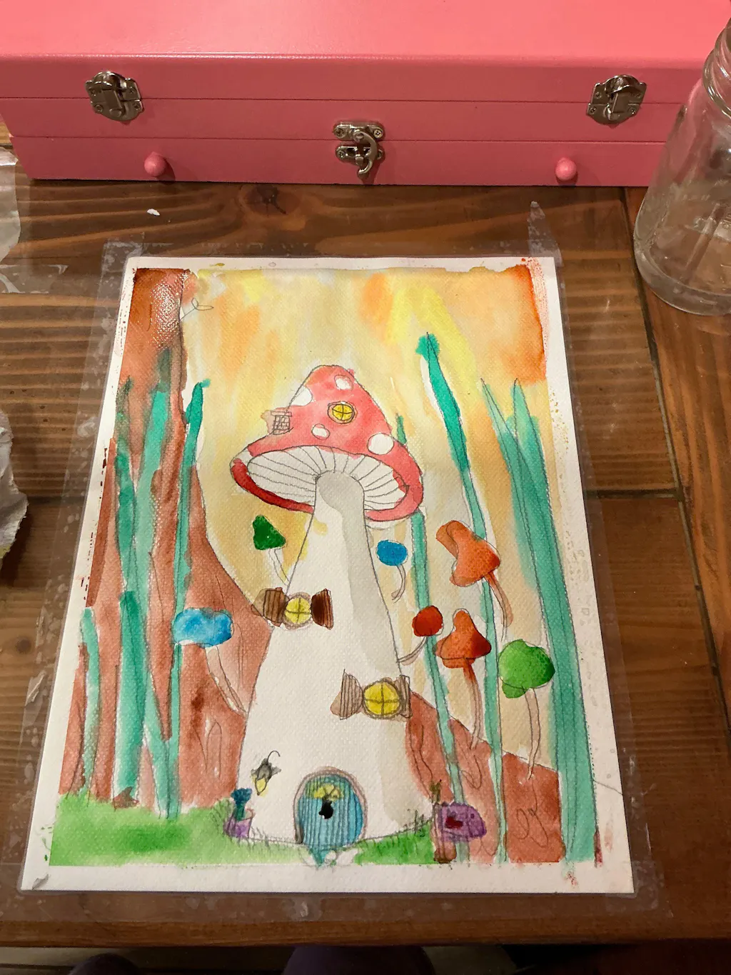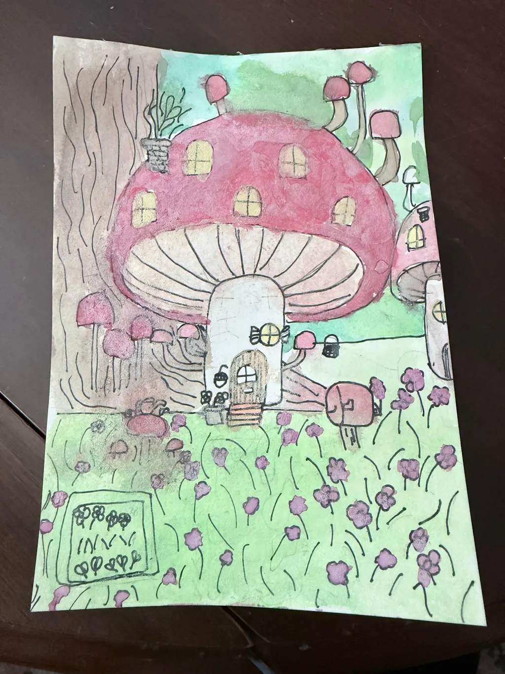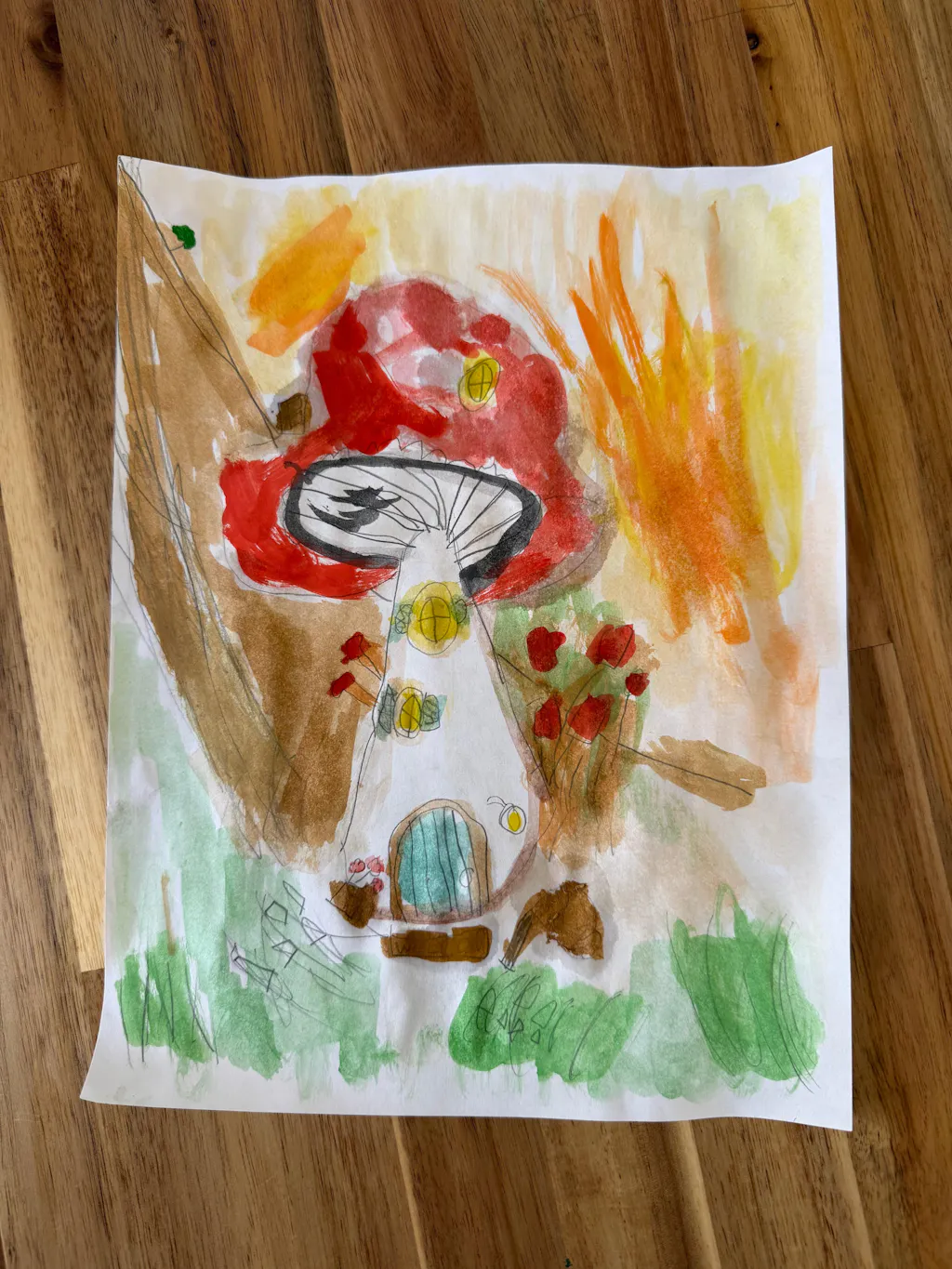 Did you know that mushrooms are more similar to animals than plants? They're called fungi and there are thousands of different types of them! In this adventure we will learn how to draw a mushroom together and it'll be up to you to transform it into a magical cozy home. This lesson is a great chance to practice the wax resist technique to create spots using crayons 🍄🟫 🍄