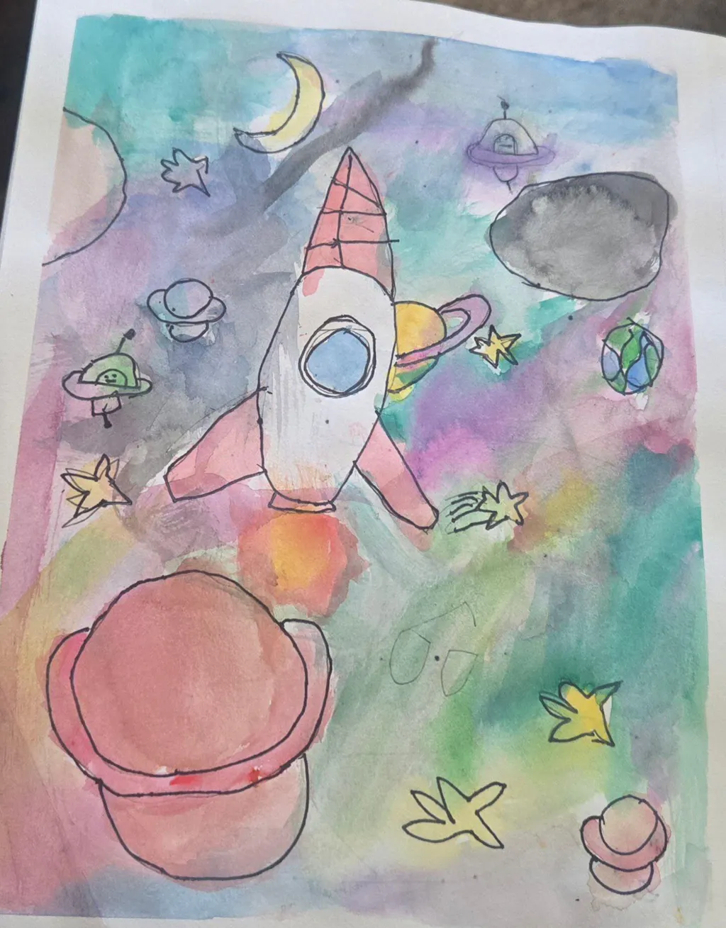 Hi friends! This week we are taking a trip to the Smithsonian Air & Space Museum to see a space shuttle, then creating our own galactic works of art 🚀