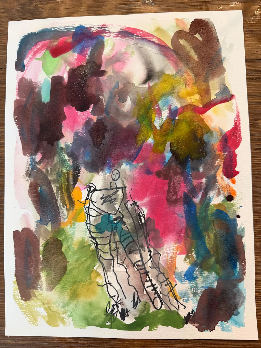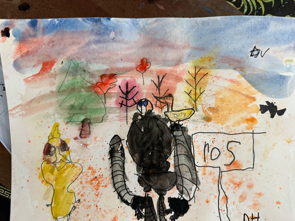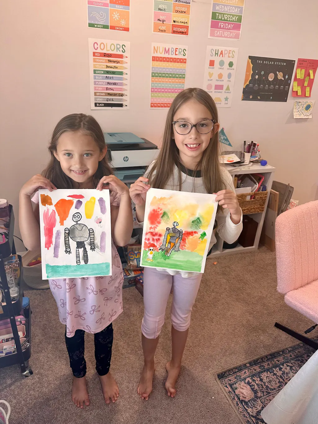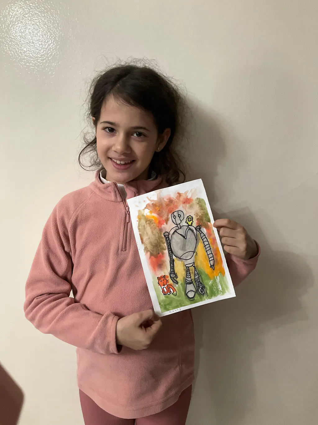 In this adventure we're painting Roz from the Wild Robot! Roz is a helpful and intelligent robot that gets stranded on an island and has to adapt to her surroundings. While there, she makes a few animal friends and helps a young goose learn how to fly. This lesson is a great chance to practice drawing shapes and learn about background vs foreground in a work of art.