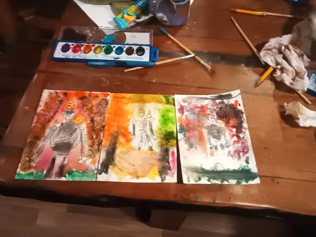 Techniques: shapes, wet-on-wet technique, fall colors, background and foreground